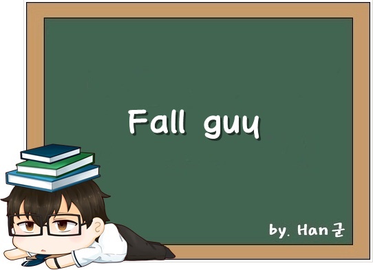 fall guy는 "희생이 되는 사람(scapegoat), 만년 패배자(chronic loser), 잘 속는 사람(schnook), 얼간이(schlemiel)"를 뜻합니다.