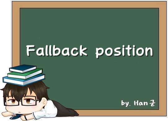 fallback position은 "(태세 정비를 위한) 후방 진지, 일보 후퇴한 기반", fall back은 "벌렁 자빠지다, 후퇴하다, 약속을 지키지 않다", fallback은 "(필요한 때에) 의지가 되는 것, (컴퓨터) 대체 시스템"을 뜻합니다.