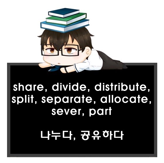 share, divide, distribute, split, separate, allocate 차이를 공부했습니다.