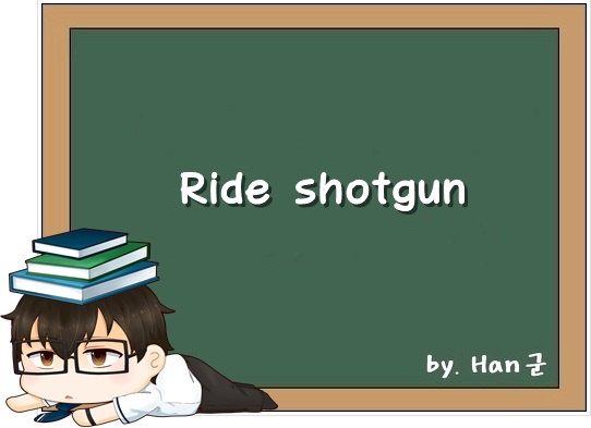 Ride shotgun. (동승하다, 보호하다, 조수석에 타다.)