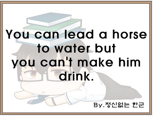 오늘은 "You can lead a horse to water but you can't make him drink."라는 영어 속담을 공부했습니다.