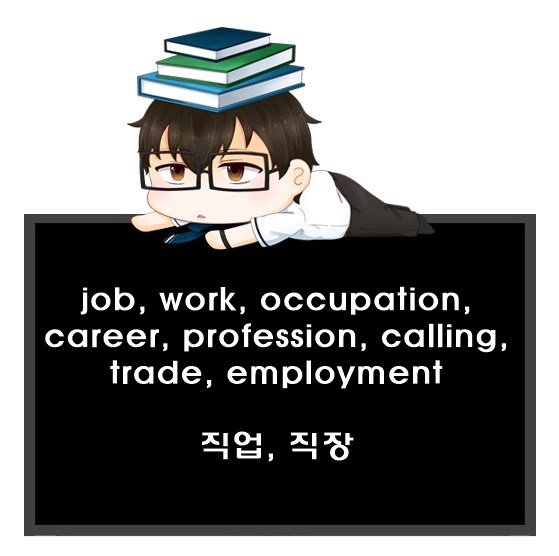 명사 유의어, job, work, occupation, career, profession, calling, trade, employment 뜻과 뉘앙스 차이를 공부했습니다.