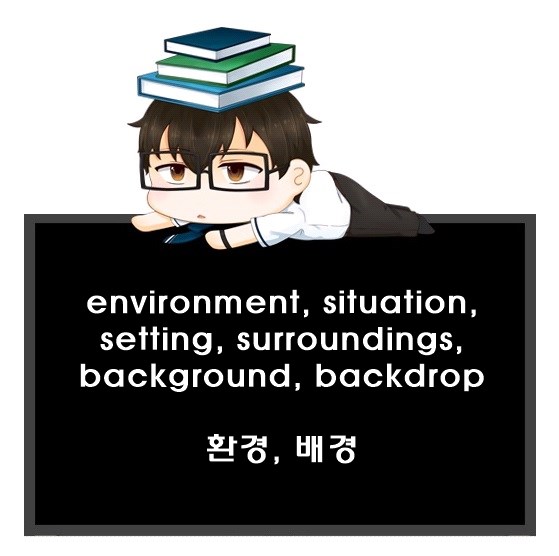 명사 environment, situation, setting, surroundings, background, backdrop 뜻과 뉘앙스 차이.