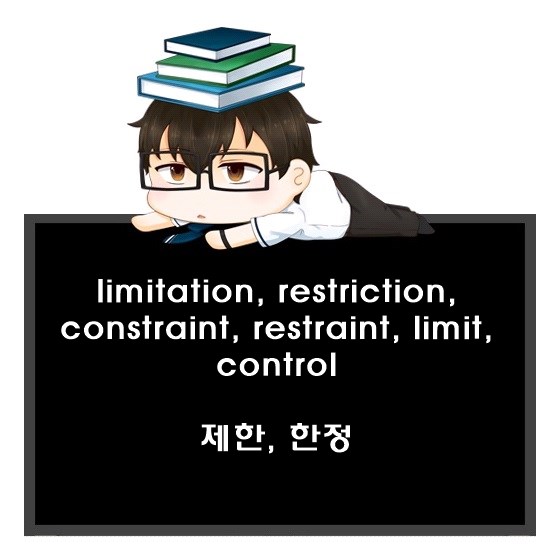 명사 유의어, limitation, restriction, constraint, restraint, limit, control 뜻과 뉘앙스 어감 차이를 공부했습니다.