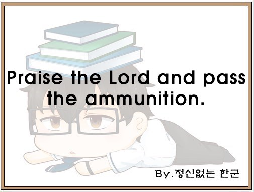 오늘은 "Praise the Lord and pass the ammunition."이라는 영어 속담을 공부했습니다.