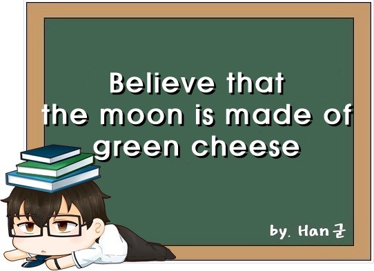 believe that the moon is made of green cheese는 "터무니없는 일을 믿다"는 뜻입니다.