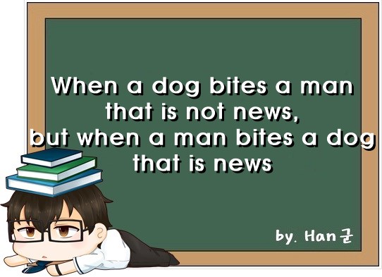 개가 사람을 물면 뉴스가 안 되지만, 사람이 개를 물면 뉴스가 된다.