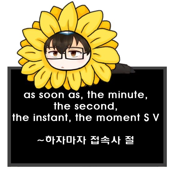 1. as soon as S V~. - ~하자마자, ~하자 곧.
