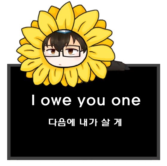 정리하자면, 도움을 받은 뒤에 그 대가를 빚지거나 신세를 졌을 때, I owe you 뒤에 그 대상만 넣어주면 됩니다.