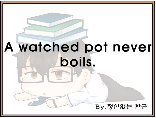 A watched pot never boils. (지켜보는 주전자는 잘 안 끓는다, 서두른다고 일이 되는 것은 아니다.)