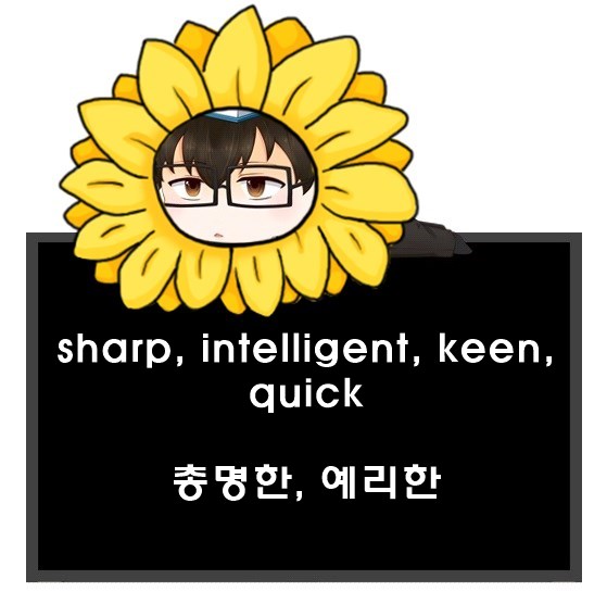 총명한, 예리한 영어로. 형용사 sharp, intelligent, keen, quick 차이.