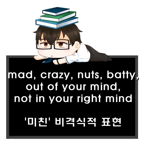 형용사 유의어 mad, crazy, nuts, batty, out of your mind, not in your right mind 뜻과 어감 차이.