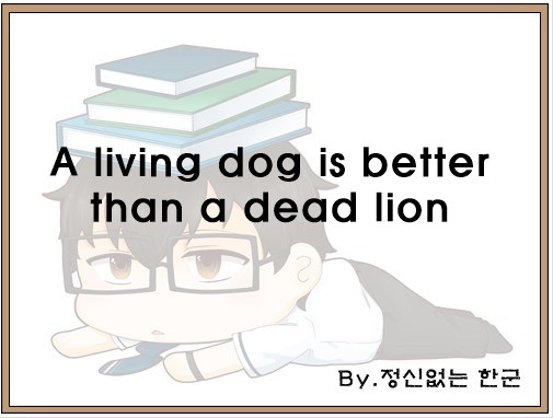 오늘은 "A living dog is better than a dead lion"이라는 영어 속담을 공부했습니다.