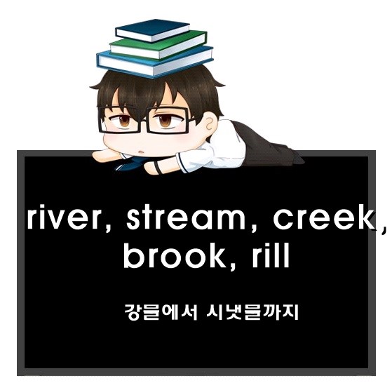 명사 유의어, river, stream, creek, brook, rill 뜻, 정의를 공부했습니다.