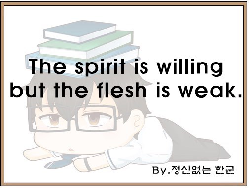오늘은 "The spirit is willing but the flesh is weak."라는 영어 속담을 공부했습니다.