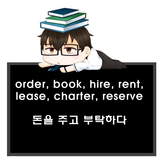 동사 유의어 order, book, hire, rent, lease, charter, reserve 차이를 공부했습니다.