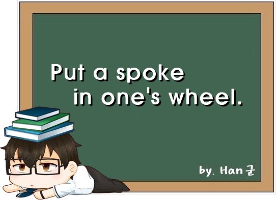 Put a spoke in one's wheel. (구르는 바퀴에 막대기를 찌르다, 일이나 계획을 훼방 놓다, 방해하다.)