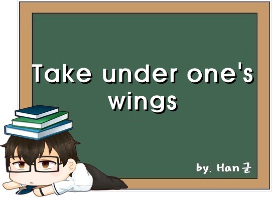 take under one's wings는 "비호하다, 지도하며 도와주다, 품어 기르다"는 뜻입니다. 암탉이 양 날개로 병아리들을 품고 있는 모습을 생각해 보면 되겠습니다.